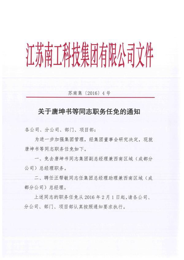 您的位置:集团首页 >> 新闻中心 >> 集团公告 >> 关于唐坤书等同志职务任免的通知