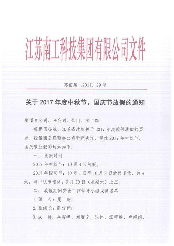 您的位置:集团首页 >> 新闻中心 >> 集团公告 >> 关于2017年度中秋节国庆节放假的通知