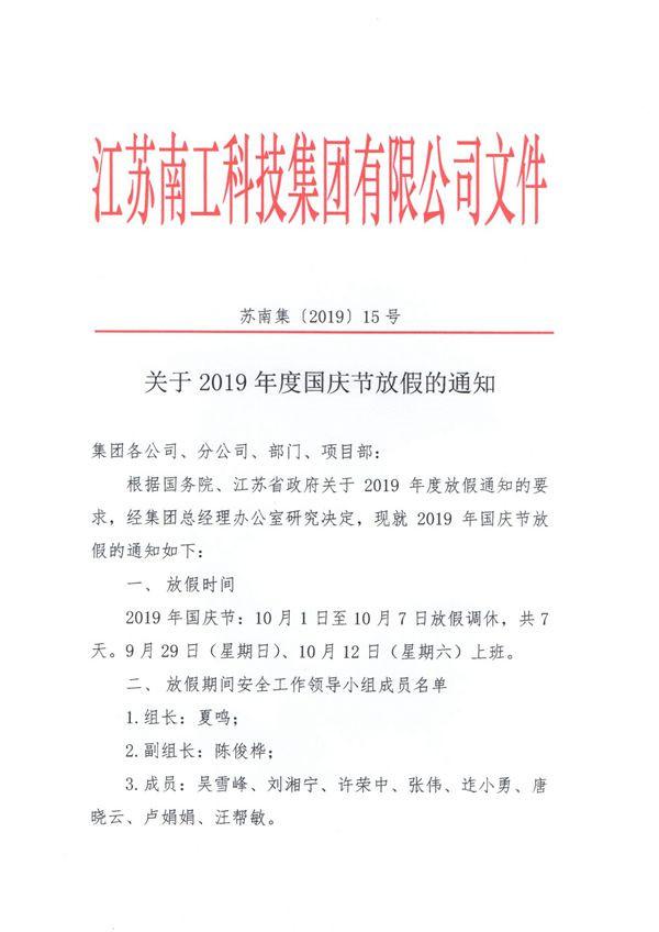 您的位置:集团首页 >> 新闻中心 >> 集团公告 >> 关于2019年度国庆节放假的通知