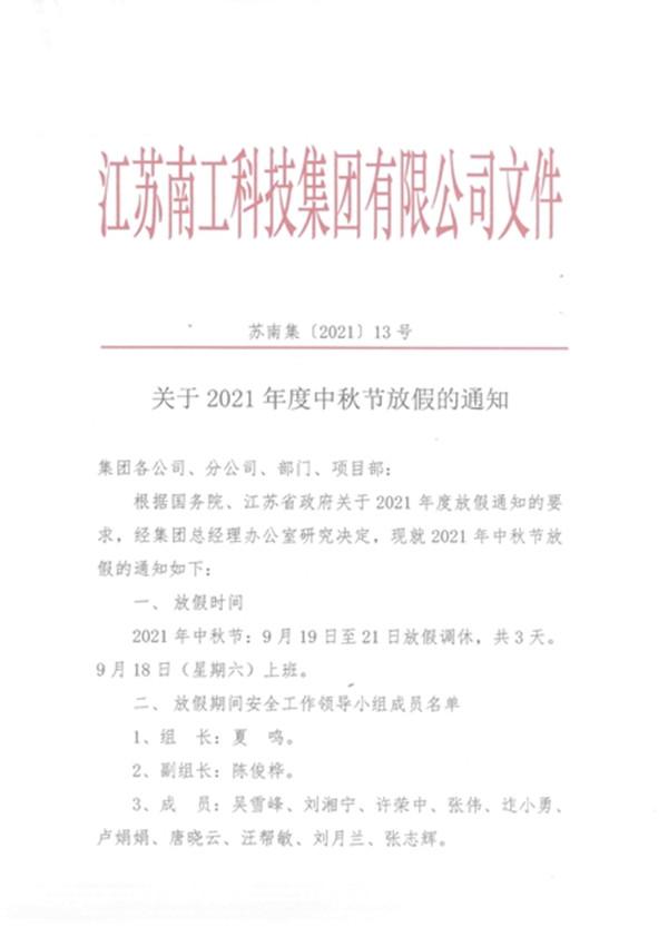 您的位置:集团首页 >> 新闻中心 >> 集团公告 >> 关于2021年度中秋节放假的通知