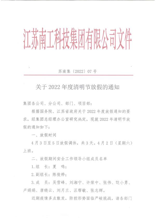 您的位置:集团首页 >> 新闻中心 >> 集团公告 >> 关于2022年度清明节放假的通知