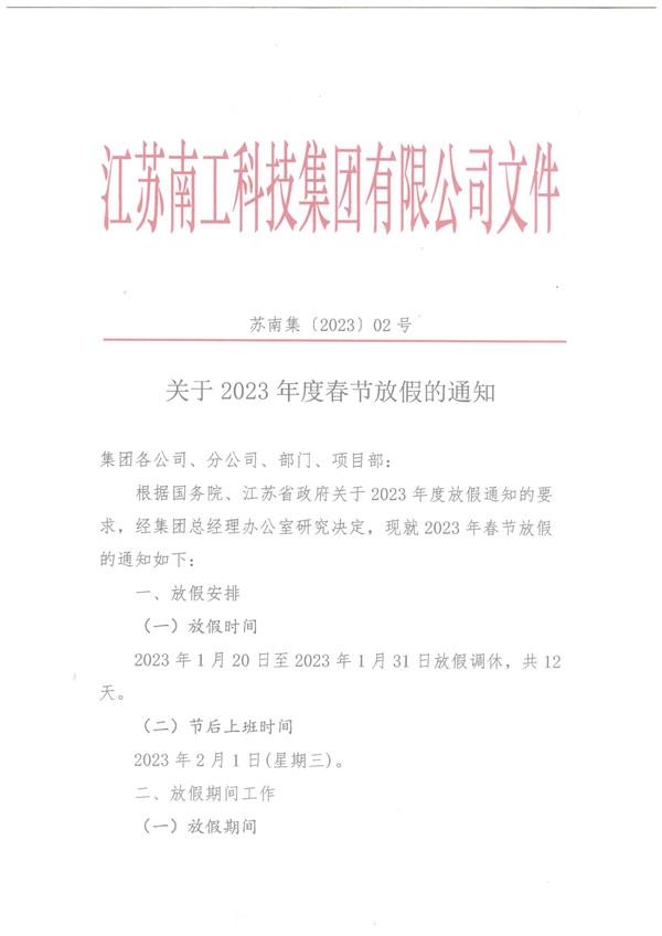 您的位置:集团首页 >> 新闻中心 >> 集团公告 >> 关于2023年度春节放假的通知