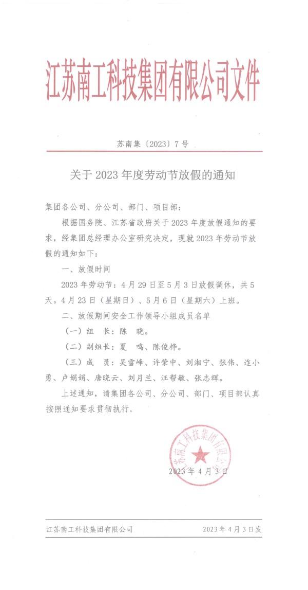 关于2023年度劳动节放假的通知