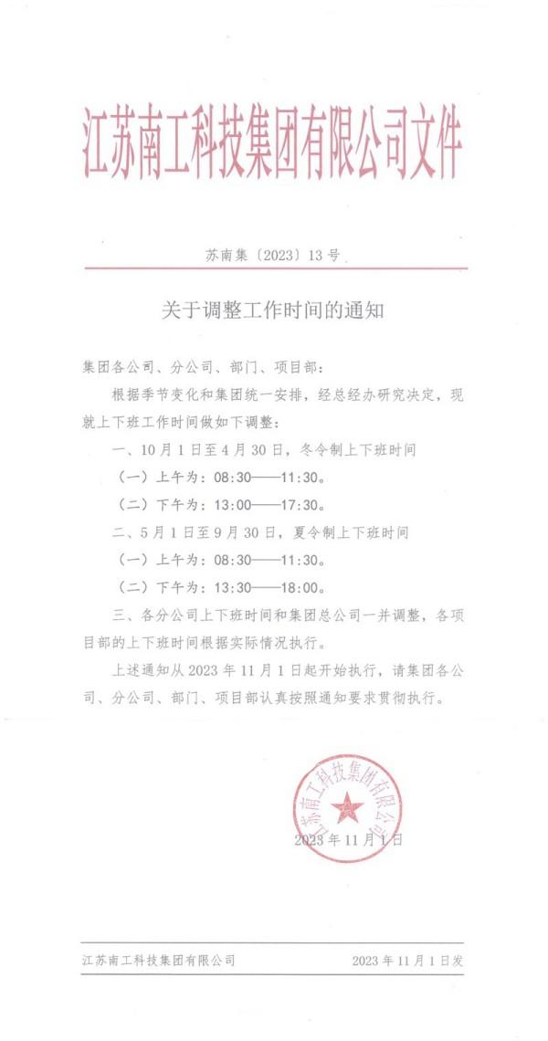 关于调整工作时间的通知