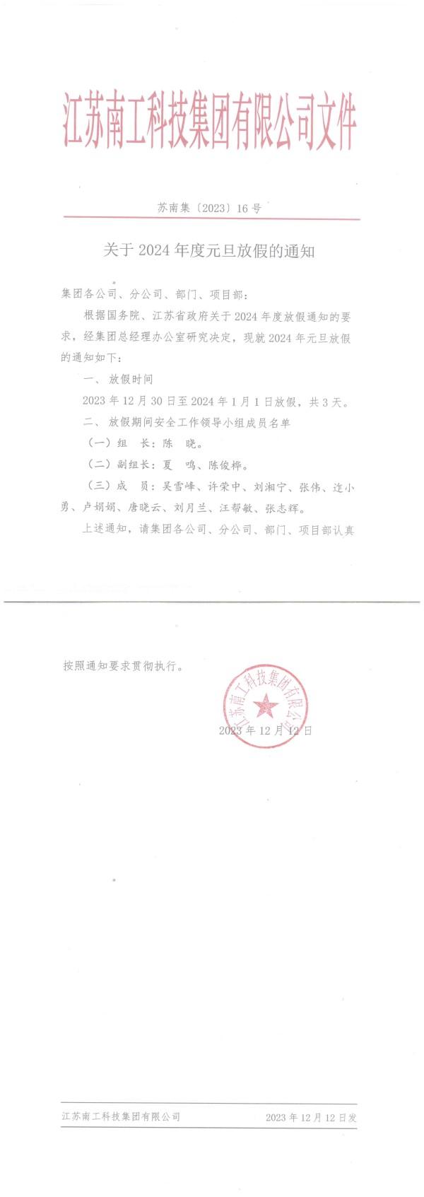 您的位置:集团首页 >> 新闻中心 >> 集团公告 >> 关于2024年度元旦放假的通知