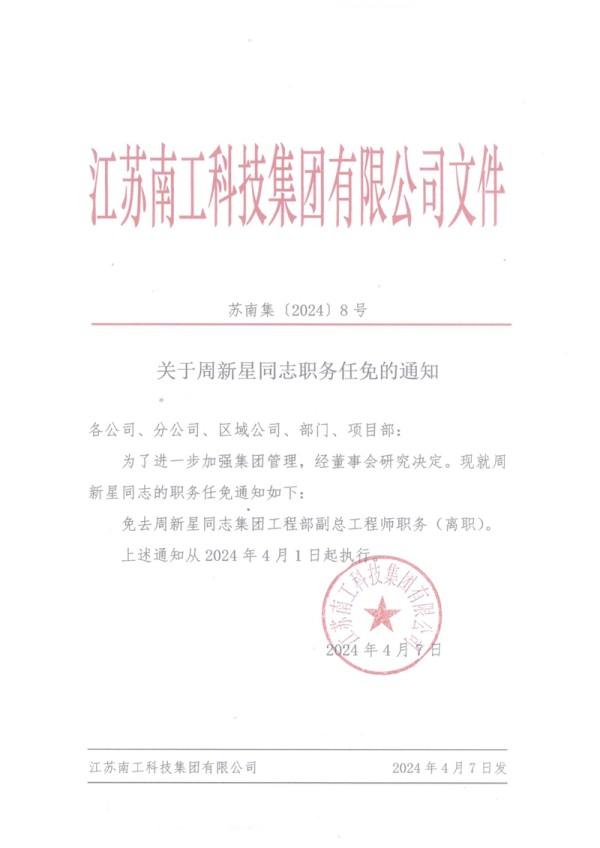 关于周新星同志职务任免的通知