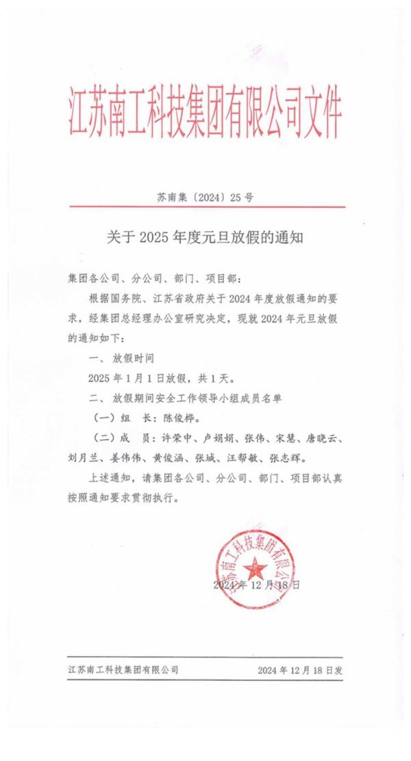 您的位置:集团首页 >> 新闻中心 >> 集团公告 >> 关于2025年度元旦放假的通知