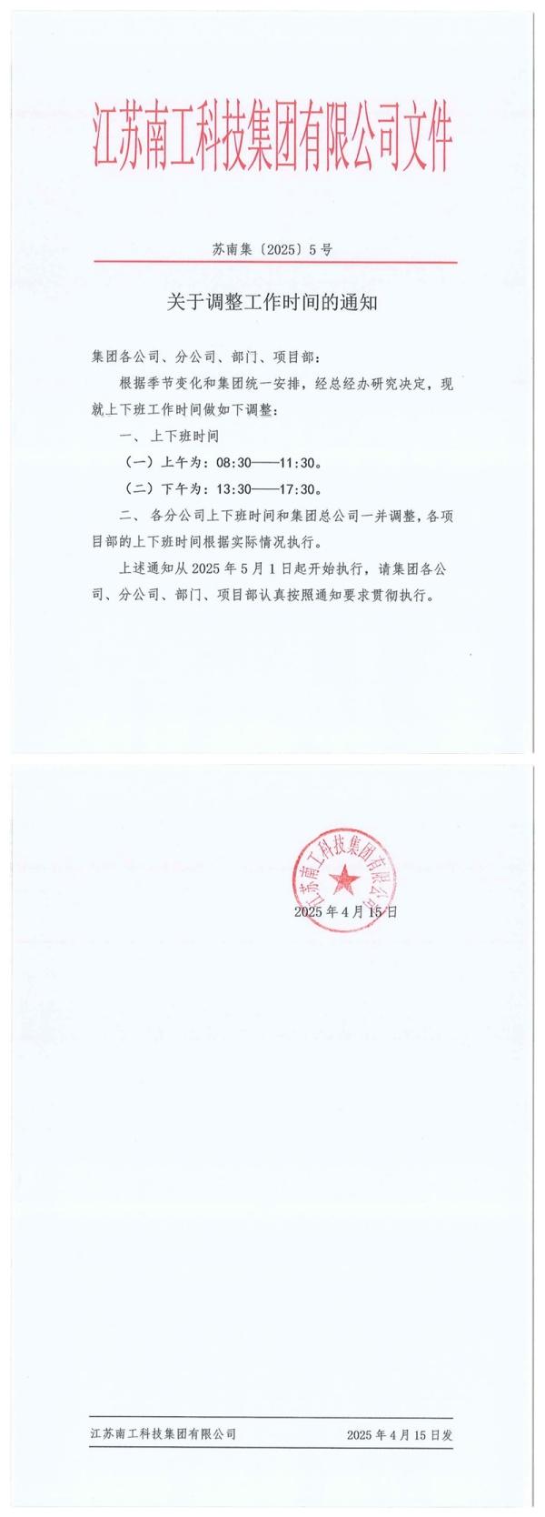 关于调整工作时间的通知