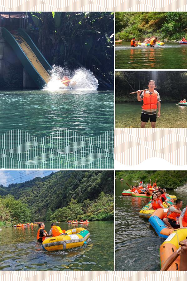9月7日上午九点半,全员出发前往位于黄山脚下有着“黄山第一漂”美称的夹溪河漂流。5公里的漂流过程中,大家互相嬉戏打闹,观赏着两岸群山环绕、水浅处清澈见底、水深处如翡翠碧玉的秀丽风景,展示出一幕幕工作中难以想象的一面。