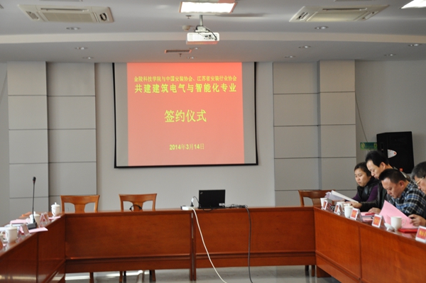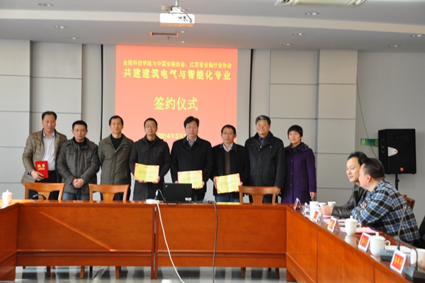 2014年3月14日,金陵科技学院与中国安装协会智能化与消防工程分会、江苏省安装行业协会智能消防电子专业委员会签订了共建“建筑电气与智能化专业”的协议。出席协议签订仪式的有金陵科技学院副校长冯年华、金陵科技学院教务处副处长吴钟鸣、金陵科技学院机电工程学院院长鞠全勇、党总支书记赵士安、副院长周扩建、郑李明、副书记陈建、楼宇系主任牟福元等领导和老师。江苏省安装行业协会会长邹金林;中国安装协会智能化与消防工程分会会长、江苏省行业协会智能消防电子分会会长、江苏多多28科技集团有限公司总经理陈晓;分会秘书长助理余晶等出席了会议。