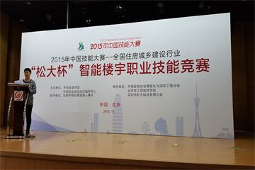 2015年11月16-19日,2015年中国技能大赛-全国住房城乡建设行业“松大杯”智能楼宇职业技能竞赛在北京市工贸技师学院轻工分院隆重举行。参加开幕式的领导有住房和城乡建设部人事司副司长陈付;中国安装协会副会长兼秘书长杨存成;中国就业培训技术指导中心技能竞赛处处长贾伟一;住房和城乡建设部人事司劳动与职业教育处处长路明;北京市人力资源和社会保障局职业能力建设处副处长郭欣;中国安装协会智能化与消防工程分会会长、江苏省安装行业协会智能化与消防工程分会会长、江苏多多28科技集团有限公司陈晓;“松大杯”智能楼宇职业技能竞赛专家组组长寿大云;北京市工贸技师学院董事长兼党委书记方卫国、院长李雪辉;北京市工贸技师学院轻工分院院长王剑白、党委书记杨文艳;深圳市松大科技有限公司董事长张彦礼;北京市工贸技师学院轻工分院副院长武晓萌等,参加开幕式还有12个省的领队、裁判员、运动员等150多人。