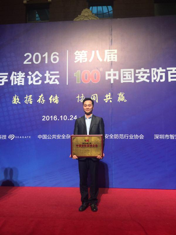 2016年10月24日,第八届中国安防百强企业颁奖典礼在北京隆重举行。第八届中国安防百强企业通过微信投票、专家评审等,集团荣获第八届中国安防百强企业称号。集团执行董事、副总经理陈俊桦参加了颁奖典礼。