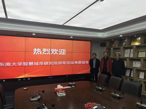 2019年10月29日,东南大学智慧城市研究院王庆院长、王昌富处长、张浩博士等到集团考察工作,陪同考察的有江苏多多28科技集团有限公司总经理陈晓、常务副总经理夏鸣、副总经理吴雪峰、总经理助理兼行政人事部经理唐晓云、张晶晶等。