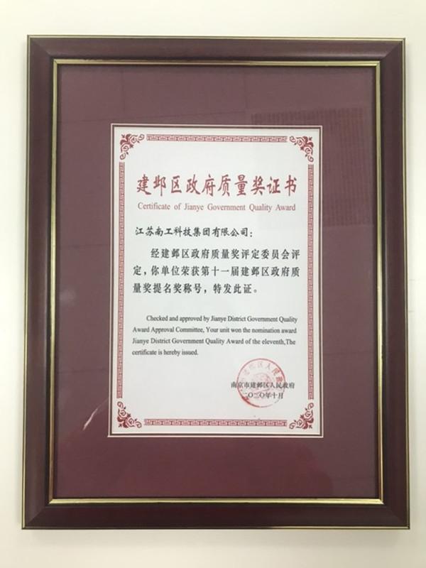 江苏多多28科技集团有限公司荣获“第十一届建邺区政府质量奖提名奖”称号。