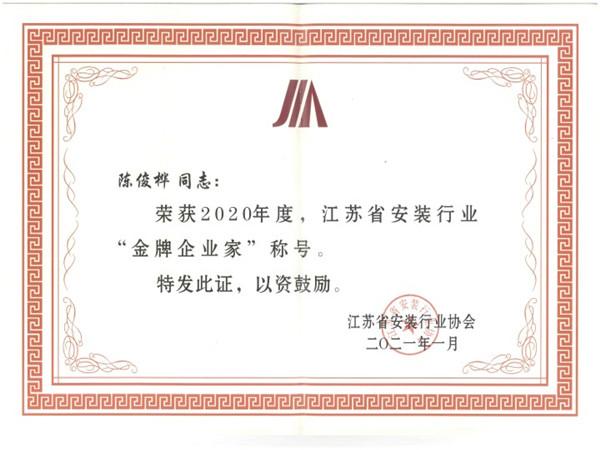 金牌企业家证书