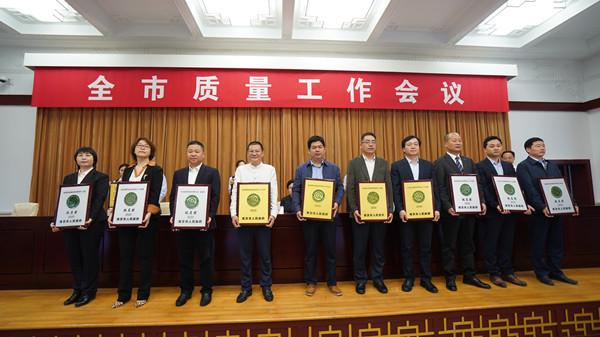 韩立明书记为2020年度南京市市长质量奖获奖单位及个人、2020年度南京市标准化奖励项目获奖单位、2020年度质量强市工作优秀区等颁奖,部分获奖代表作交流发言。