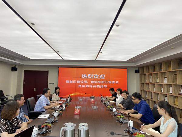 2021年7月1日上午,南京市建邺区建设局副局长崔晓荫、建邺高新区管委会经济发展部部长潘崟等一行五人到多多28集团调研工作。集团执行董事陈俊桦、副总经理吴雪峰、许荣中、卢娟娟,总经理助理唐晓云陪同调研。